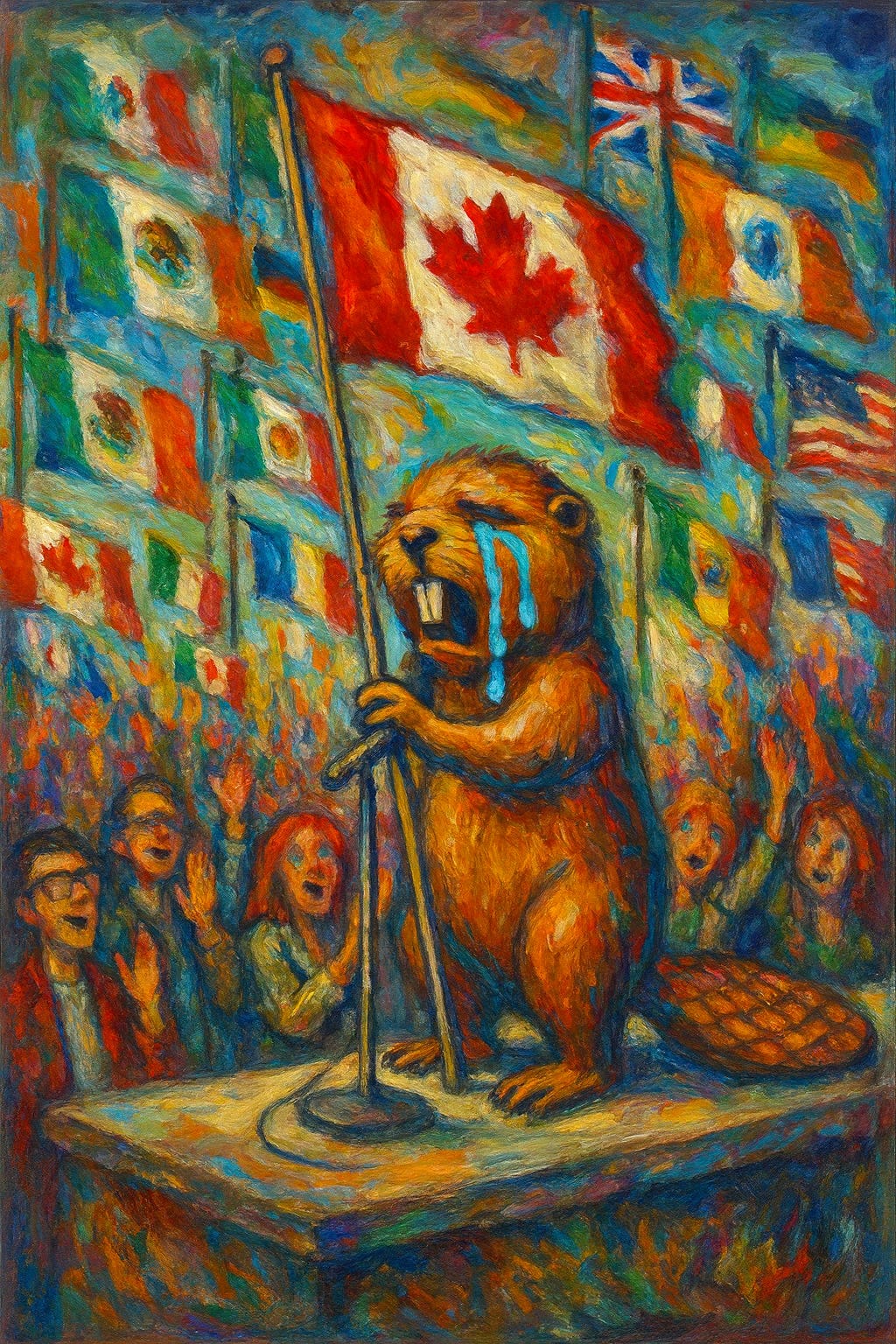 You complain and think that being not American is not an identity. It sure is. I love the fact that we don't have an immigration policy that exploits undocumented workers by design. I love that we have health care, for now, that keeps you from worrying if you need to sell the house to pay for an operation. I love the fact that we tend to stay out of wars because we don't like them, but once we are in it, people notice. I sure as fuck am not hyphenated when it comes to my citizenship. The reason we have not collected as a singular identity is because we have 3 founding peoples. Australia and the USA had both one. That makes for a weirder dynamic. We may have life, liberty and the pursuit of happiness, as long as it's for the rich. Sometimes the very boring peace, order and good government is absolutely wonderful. Trudeau, a woefully unserious person's worse sins may have been blackface, but that seems quaint to that orange turd from hell's actual crimes. And Polievre, the biggest wannabe ever is as muppety as Trudeau. I want my Canada to be recognized as what it actually is: a well ordered empire. And we should be reluctant about it but not so apologetic. The days of mea culpable are over. The barbarians are at the gates and they pop boners for their flag. And yes, the beaver and Canada goose are awesome. And I think of a campfire as a religious experience. We are by nature fragmented and you can keep your hyphen if you want. Mine ended when I found out about Vimy Ridge and the discovery of insulin.
