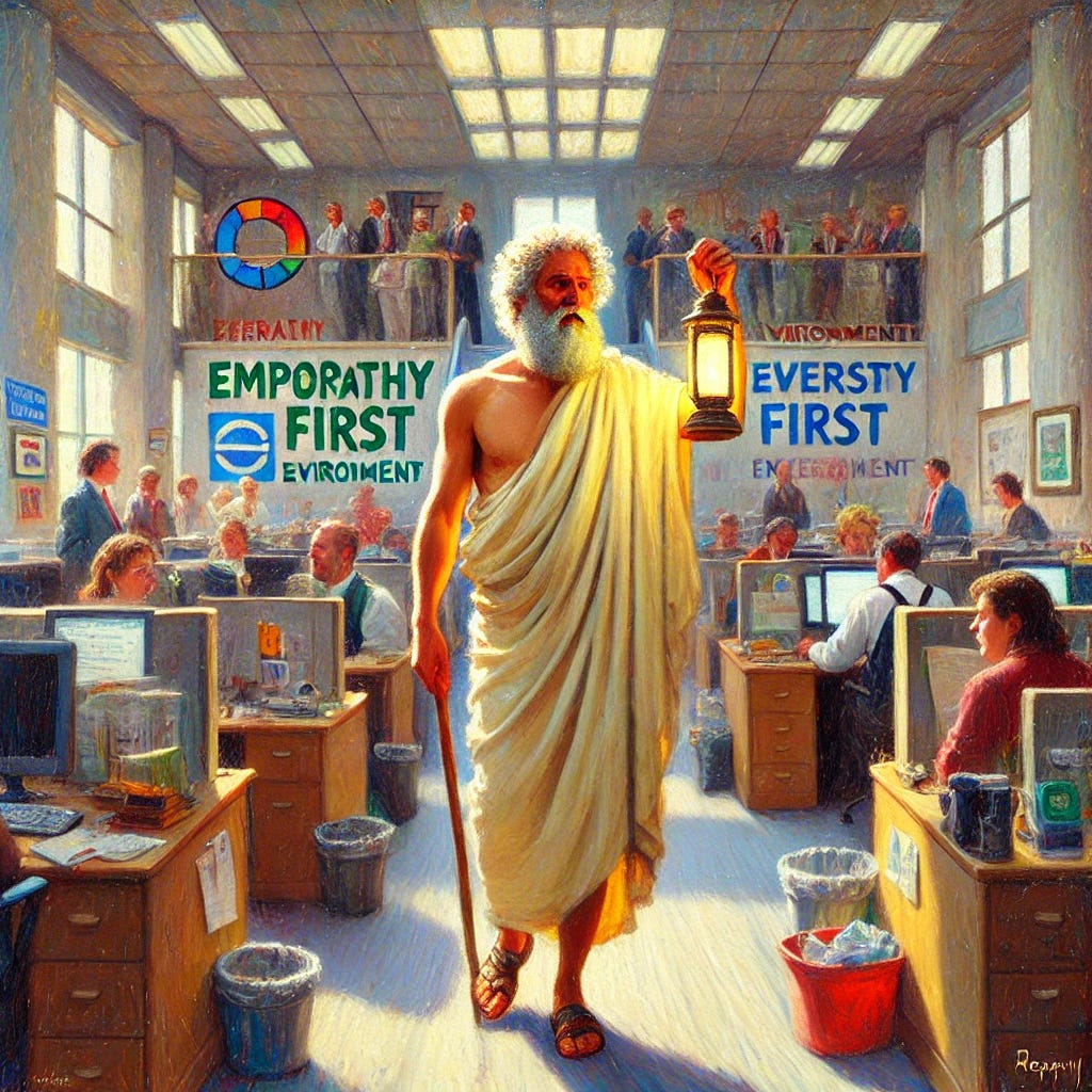 Diogenes, lamp in hand, would search our campuses in vain for an honest man. We laugh at redemption, then tell kids God put them in the wrong body, offering dresses, drugs, and mutilation as salvation. It’s not compassion; it’s madness with a halo.