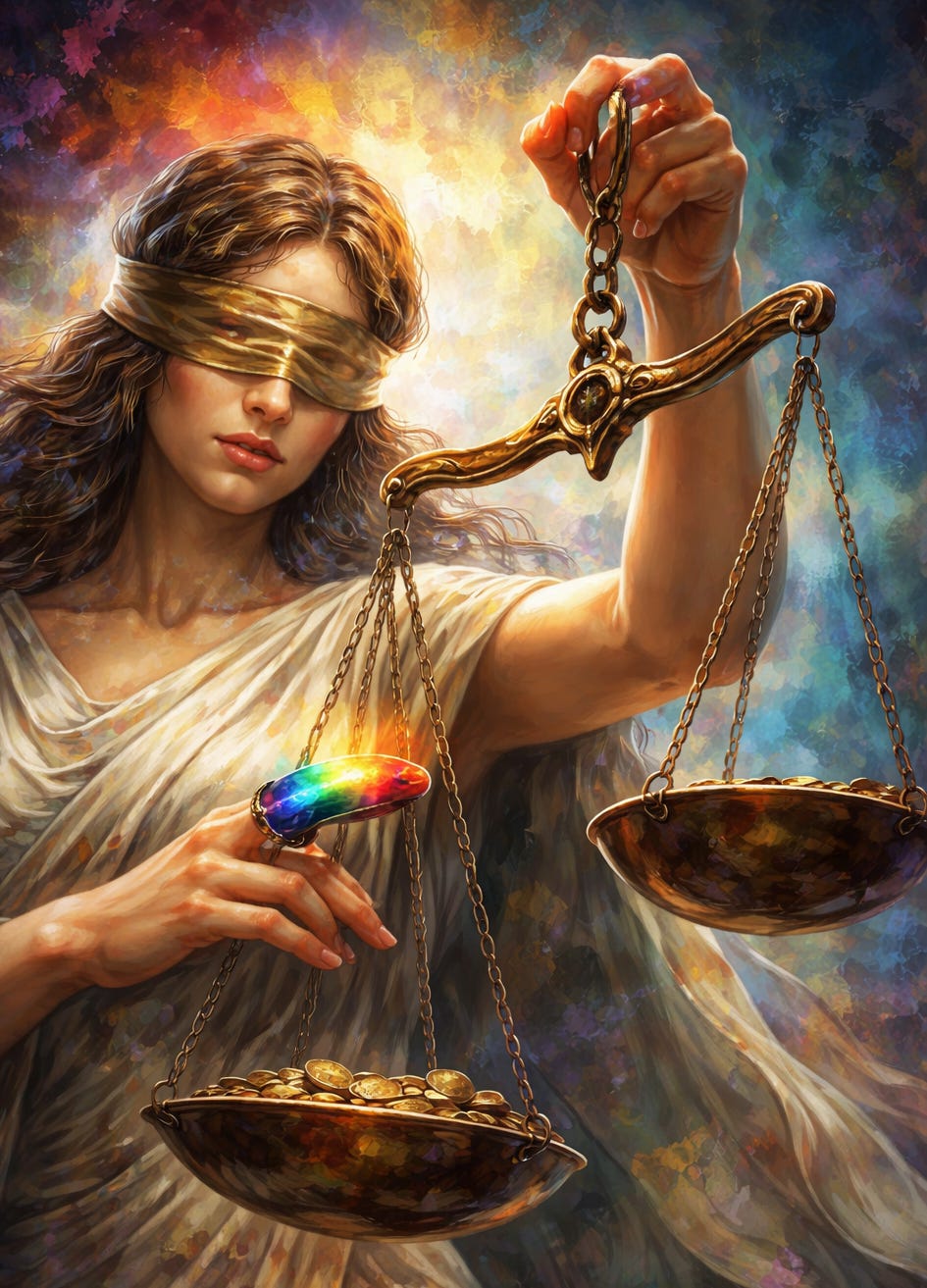 Truth is no longer something to be discovered through evidence, argument, or reason. It is assigned—distributed by institutional fiat, affirmed by applause, and insulated from challenge. Justice no longer weighs facts; it weighs feelings. The law, once imagined as blind, has been fitted with a mood ring. It swivels obediently toward the loudest outrage of the moment.