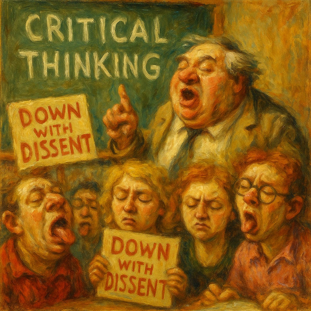 Orwell diagnosed the ailment with X-ray clarity. In 1984, doublethink is indoctrination perfected. In "Politics and the English Language," he observed how words are weaponised until they no longer convey thought but strangle it. How many classroom conversations now begin and end with “settler-colonialism” or “white supremacy,” the incantations of our new priesthood?