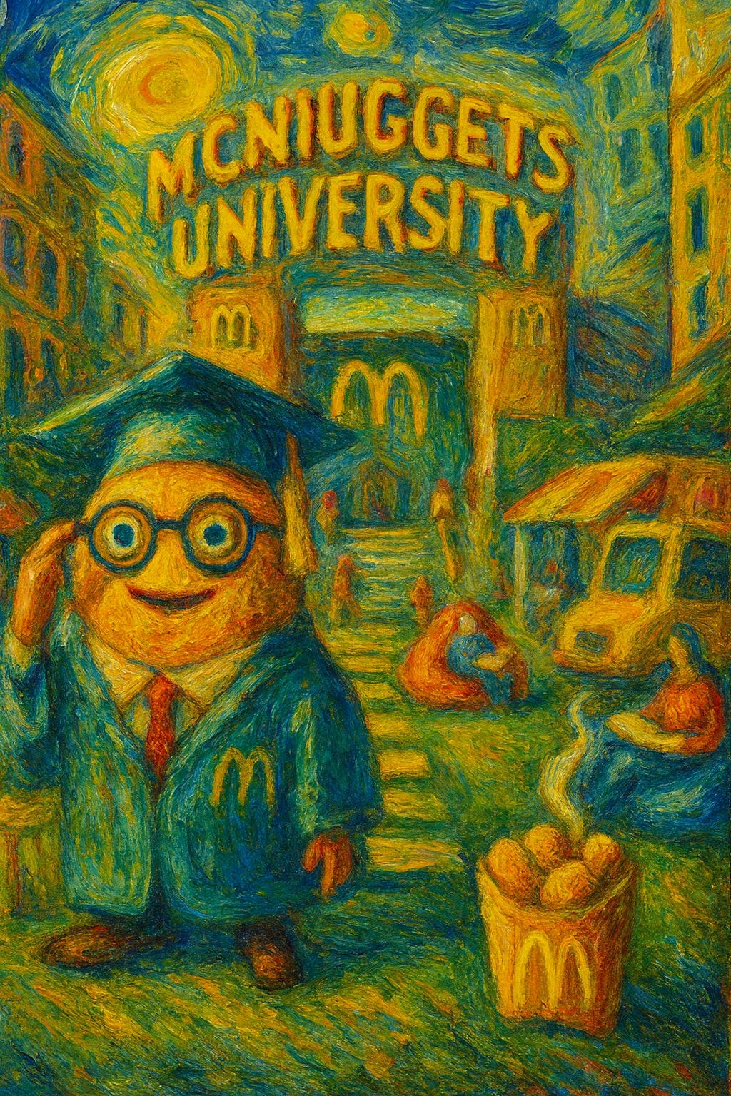 And what do we do? We hand students slogans instead of sentences. We feed them dogma instead of doubt. We produce, in place of thinkers, credentialed parrots. McNuggets University: filling, profitable, and intellectually void. Indoctrination is the fast food of the mind.