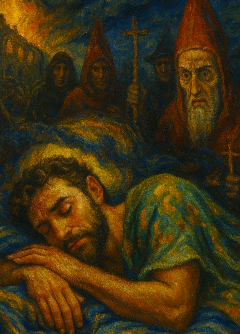 They clapped as if the parishioners had told them the offertory was complete. Then the light dimmed, the air smelled of sulphur, and I woke to the bathroom fan, my wife’s steady breathing, and the small mercy of tap water.