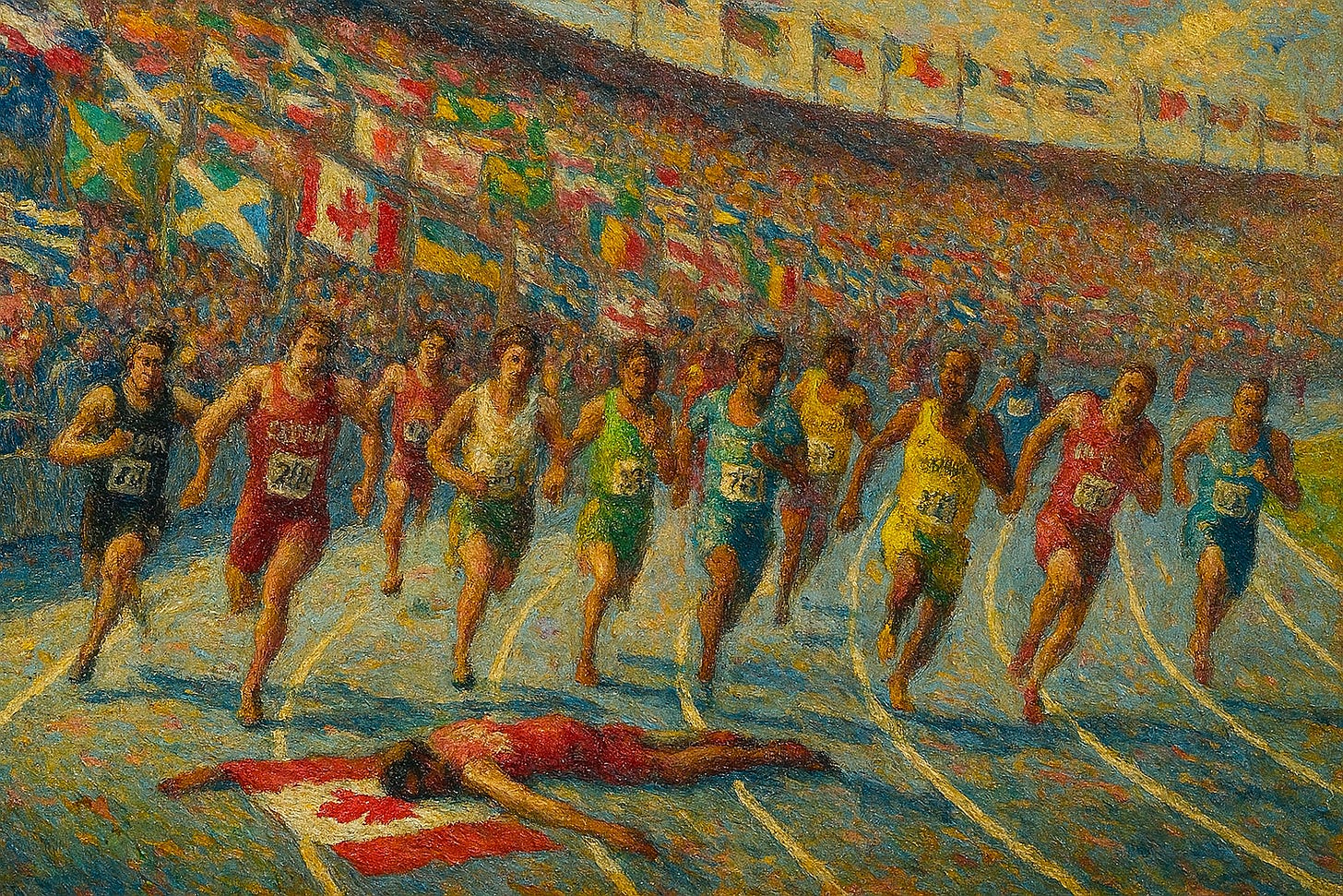 We’ve been governed not by conviction but by performance artists. Finance ministers who begin every sentence with “Let me be clear” and then proceed to say nothing intelligible. Slogans have replaced our national conversation. And land acknowledgements? A ritual of colonial cosplay: “Yes, this used to be your land. No, you still can’t drink the water. But thanks for the reminder.”