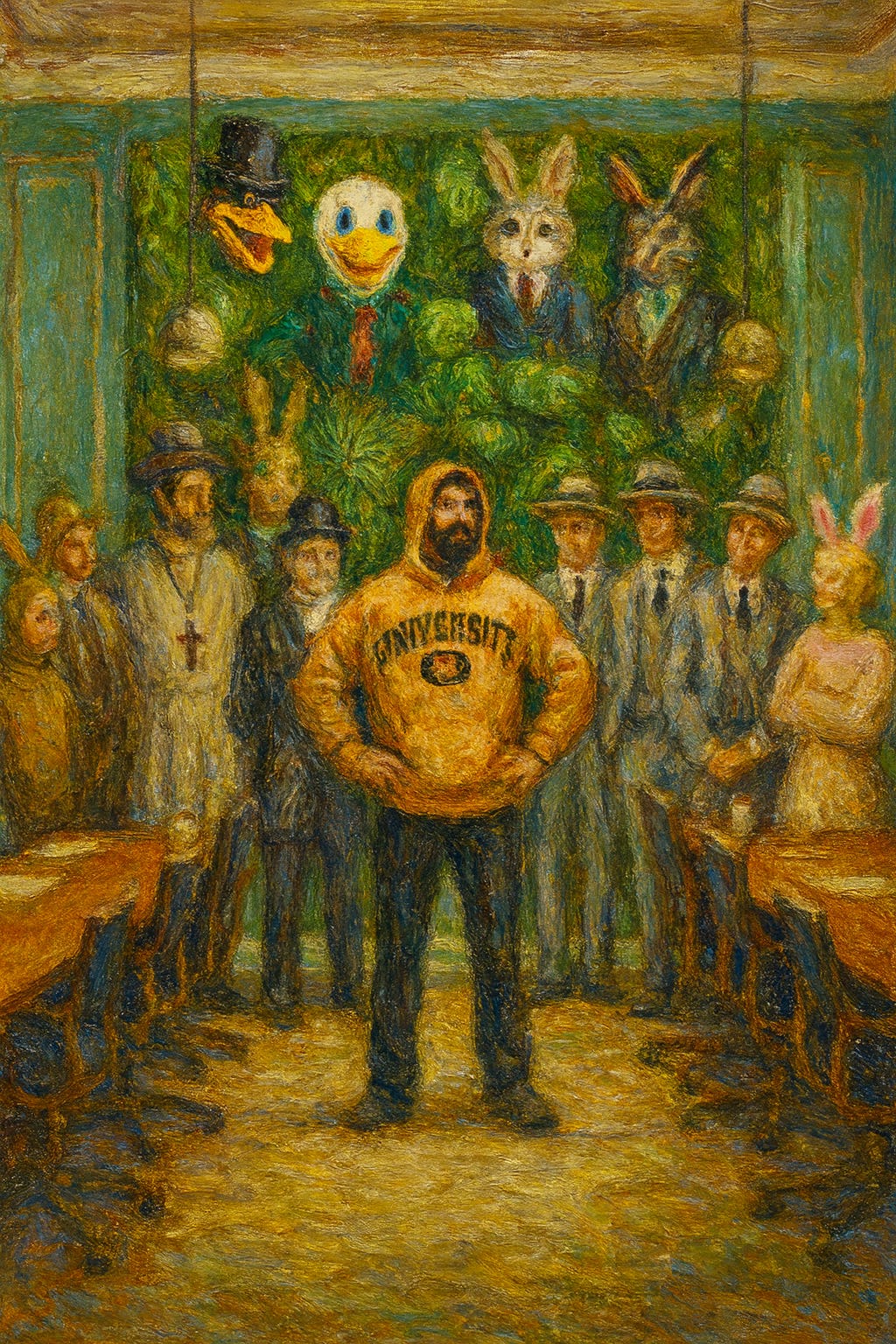 And the administration laps it up. They’ve built a process so grotesque it could be Kafka’s group project with Orwell. I was suspended without charges, exiled from campus, and gagged by a lawyered-up edict forbidding contact with anyone who might speak on my behalf. Meanwhile, the gossip mill was given free rein to paint me as everything short of Jack the Ripper. Employees claimed to have “witnessed” me assaulting students in classes I never taught; others swore I’d driven across town to terrorise a family, though I was, in reality, at home arguing with my doctor about renewing my Lorazepam prescription.