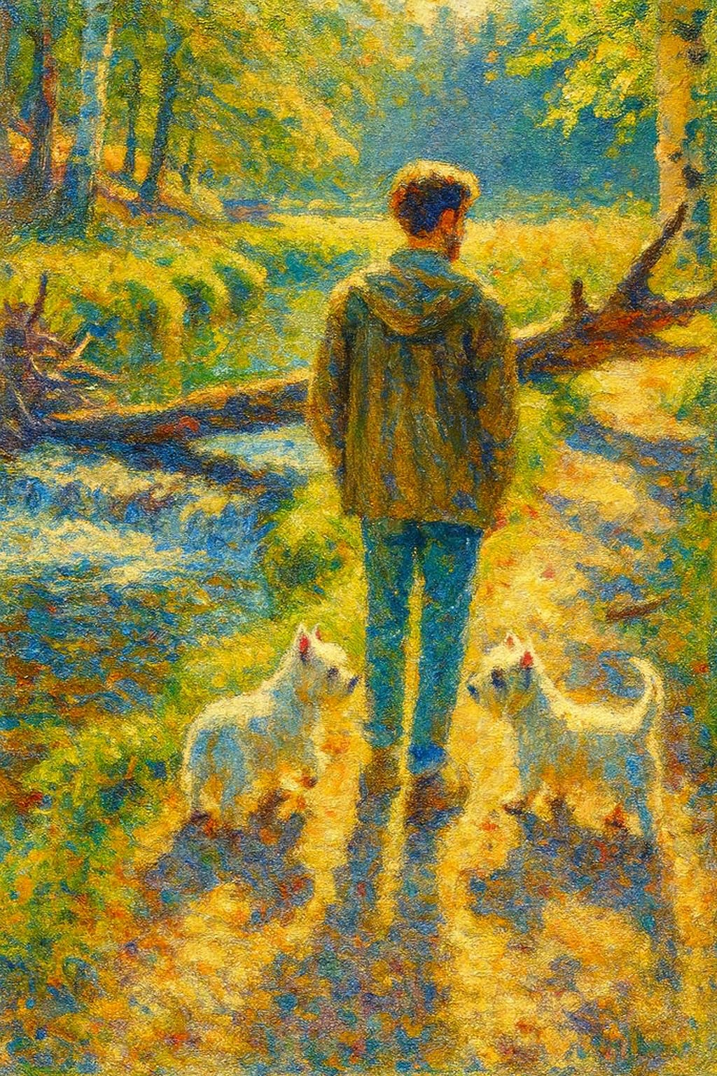 And if the black dog shadows us down the path, let him. We’ll keep walking. The collars will blink, the brook will work around the obstacle, and the geese will conduct their minutes. For now, in this small republic of particulars, all is, if not perfect, in order.