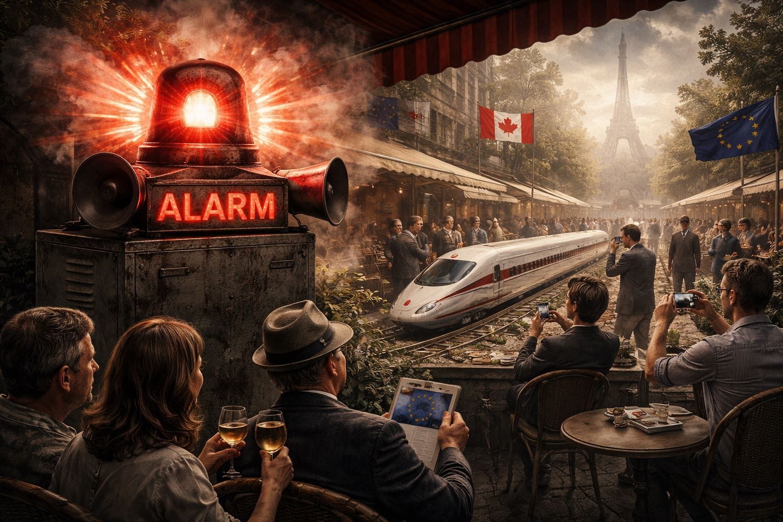 Instead, the alarm bells are muffled—smothered beneath a polite haze of distraction—while the only sound we register is the cheerful ding of the next political toy. A sleek, Euro-chic choo-choo glides in, promising elegance and modernity, quietly demanding massive subsidies per ride.