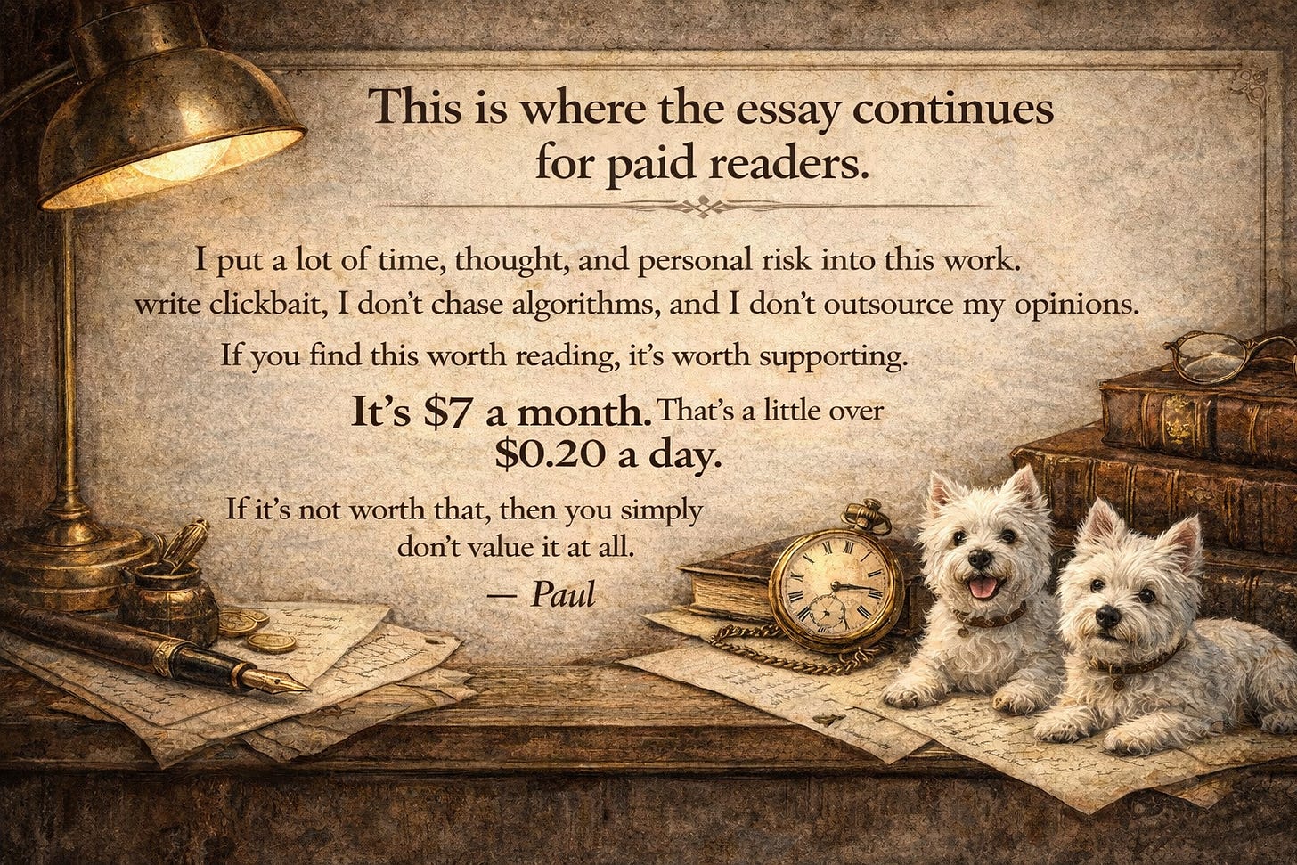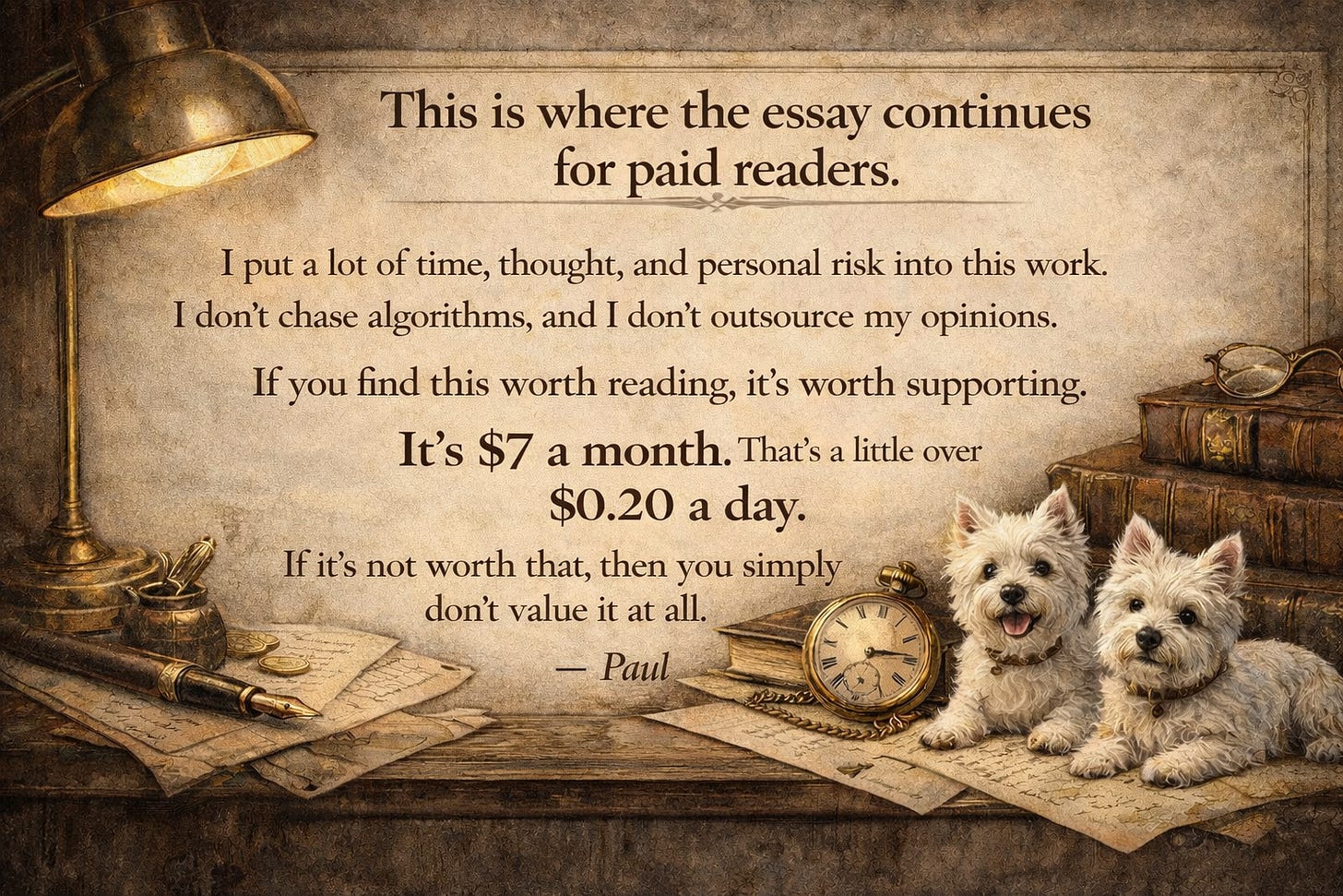 If you believe in free speech—not the slogan, but the dangerous, untamed variety—then subscribe to support uncensored, heretical writing. Every paid subscription buys more time to write without asking permission from the sort of people who think “problematic” is an argument.