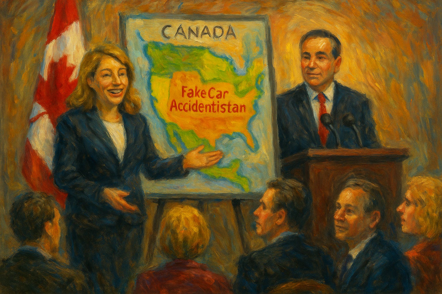 “You know,” Carney sneers, swirling his wine, “I’ll be running higher deficits than Trudeau ever dreamed of. But voters are so dim that all I need to do is toss in the words ‘cost savings’ a few times in a sentence. I’ll say it at least thrice, like an incantation, and the CBC will repeat it until it sounds like scripture.”