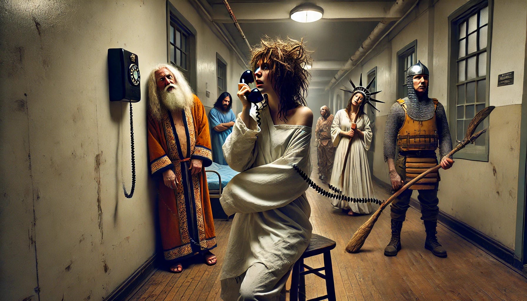 The conversation was cut short when Bedlam Hospital nurses tightened Campbell’s straight jacket. She had tried to get a burner phone that a 14-year-old girl who had met Trudeau at the Toronto Taylor Swift concert had given her but it was taken away. The girl had flown it in through an open window with a drone she had stolen from her little brother.