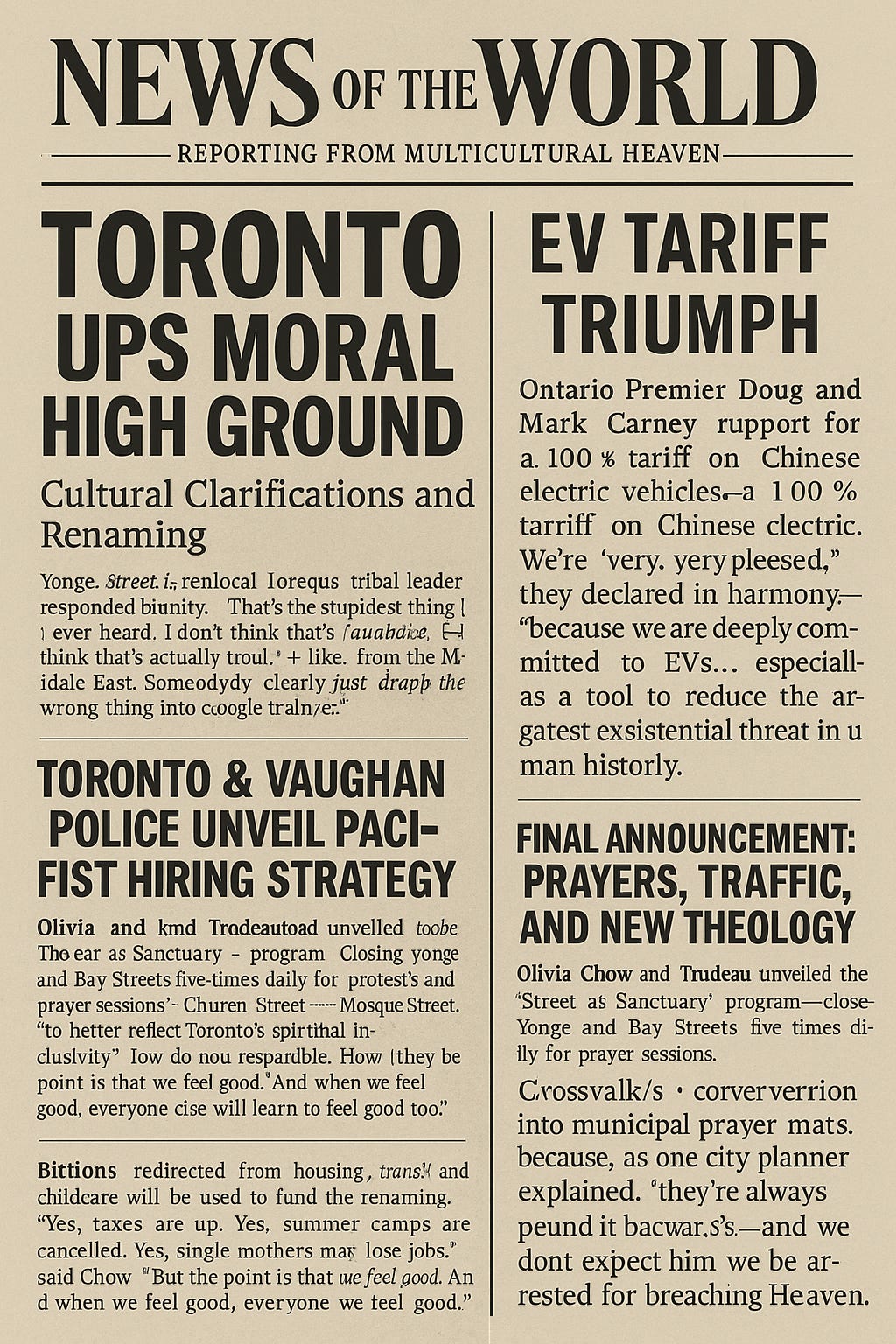NEWS OF THE WORLD - Olivia Chow pledges to ban all proper nouns more than 10 years old.