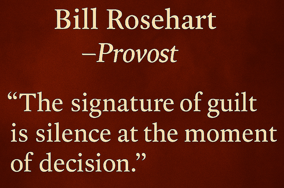 The Provost — the university’s chief academic officer, guardian of process and principle — became instead its chief functionary. He signed a verdict written by others, denied me any hearing, and certified fiction as fact.