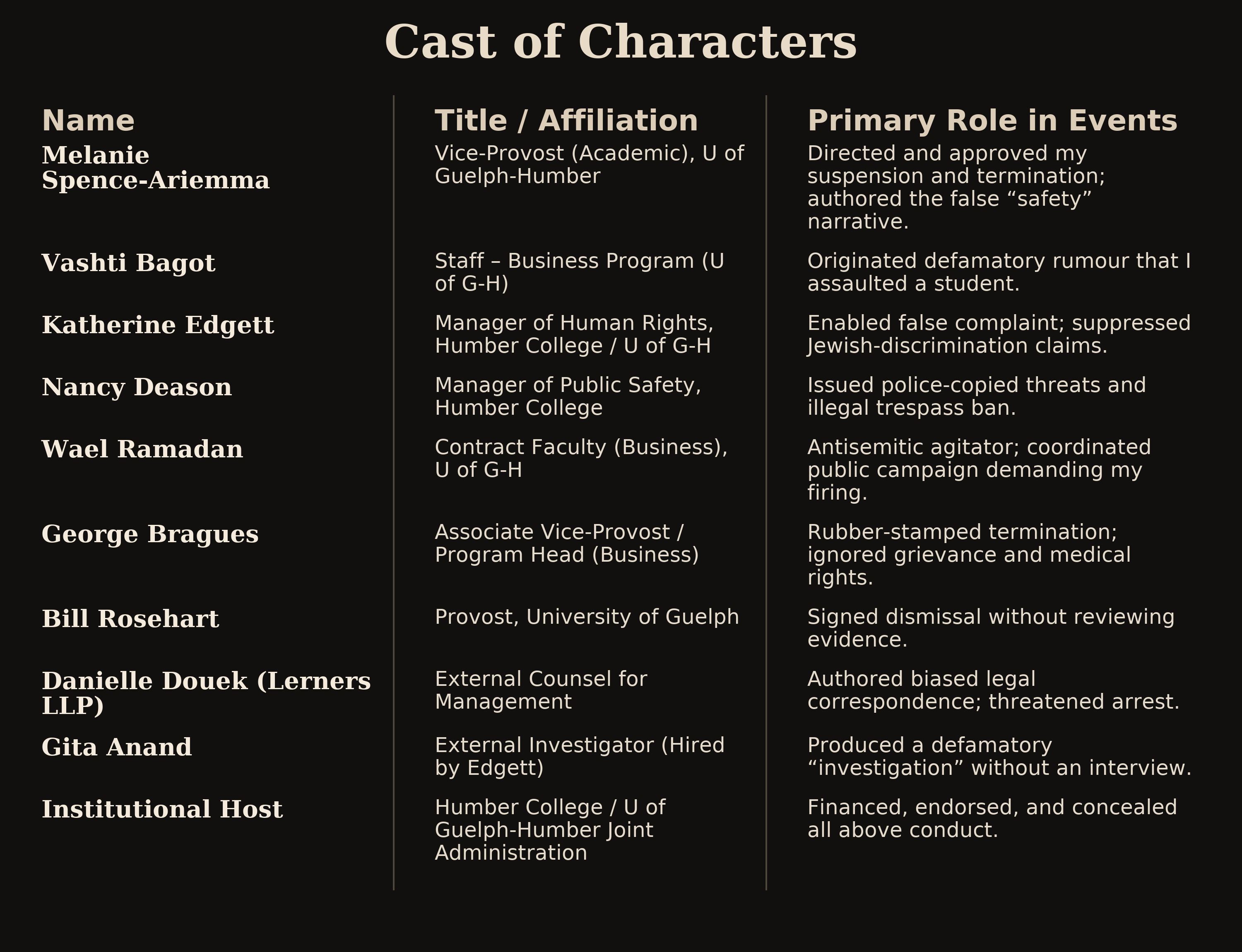 It takes a certain genius for injustice to make corruption look competent. Still, between Van Acker’s smug prophecy and Spence-Ariemma’s preemptive triumph, the University of Guelph-Humber has turned due process into a spectator sport — complete with a script, a villain, and no need for a verdict.