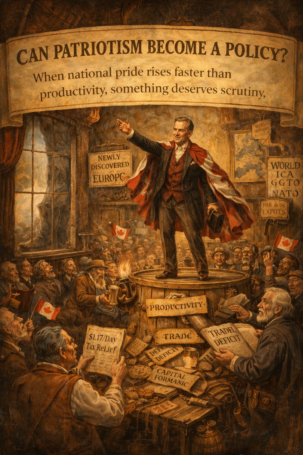 Mark Carney understands something elemental about modern electorates: if you inflate national pride at the exact moment citizens feel economic anxiety, you can convert mood into a majority. You flatter. You reassure. You rebrand weakness as resilience. You tell people they are not stagnating — they are ascending. Not slipping — simply misunderstood.