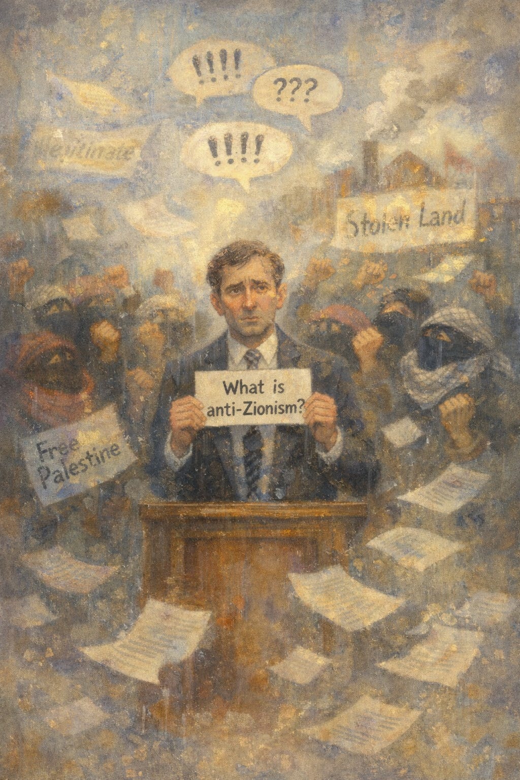 And yet, when one asks the most elementary follow-up—what exactly does that mean? What is anti-Zionism?—the answer never arrives in the form of a definition.