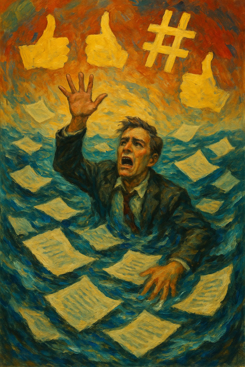 Ours is a civilization drowning in data yet starved for wisdom: armed with omniscience, incapable of insight. We flail in the ocean of knowledge, waving for likes as we go under.